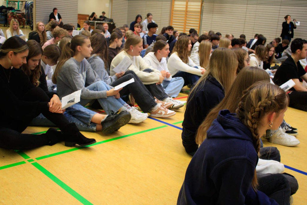 Unter diesem Motto stand die Besinnung zum Schuljahresanfang der Fachschaften Religion und Ethik. Gleichzeitig bleibt es das Motto des gesamten Schuljahres, denn nur gemeinsam kann man manche Herausforderungen meistern, nur gemeinsam lohnt es sich, durch den Alltag zu gehen. Auch die Beiträge zur Besinnung folgen diesem Motto: „Verbundenheit“, gesungen von Frau Eckhoff-Fieber gemeinsam mit der Klasse 6c, „Count on me“ von Bruno Mars und „Wir sind groß“ von Mark Forster. Auf geht´s in ein gemeinsam gestaltetes Schuljahr.