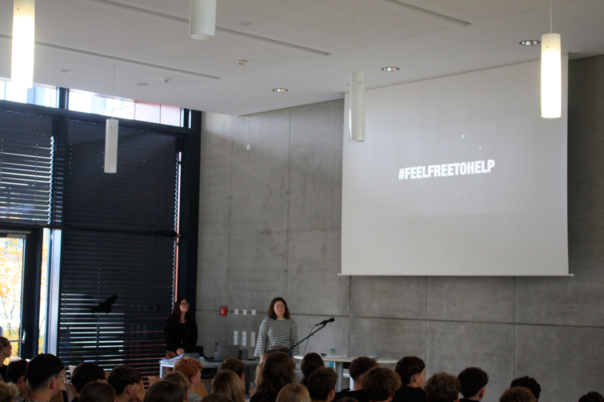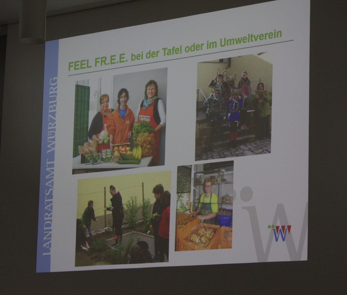 Frau Dorsch stellte mit einer Kollegin des Landratsamts Würzburg das Programm vor, durch das sich jährlich viele Schülerinnen und Schüler freiwillig und ehrenamtlich in der Gesellschaft engagieren. Das Schuljahr, das DICH weiterbringt … im Sportverein, Kindergarten, Feuerwehr usw. Ein Beitrag zu einem gelungenen, respektvollen Miteinander.