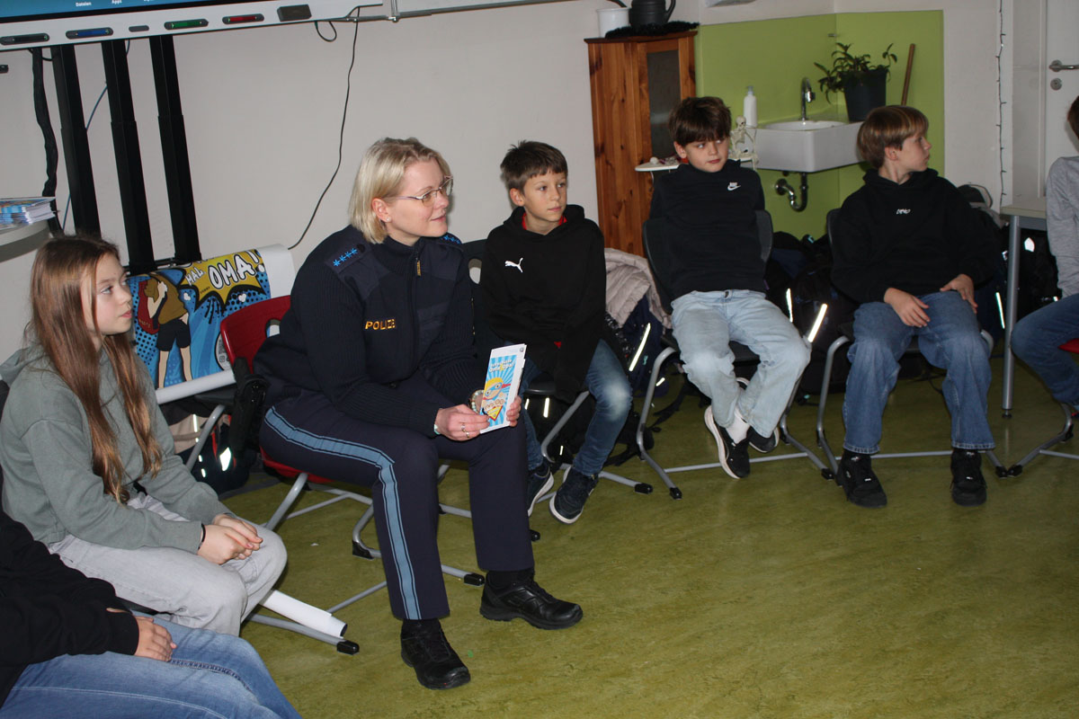 Polizeihauptmeisterin Christina Martin der Polizeiinspektion Ochsenfurt informierte alle Schülerinnen und Schüler der 5. Jahrgangsstufe über Telefonbetrug bei älteren Menschen. Hiermit soll über Kinder und Jugendliche das Thema an die ältere Generation herangetragen werden – in Form dieses Aufklärungs- und Sensibilisierungsprojekts!