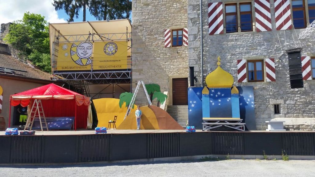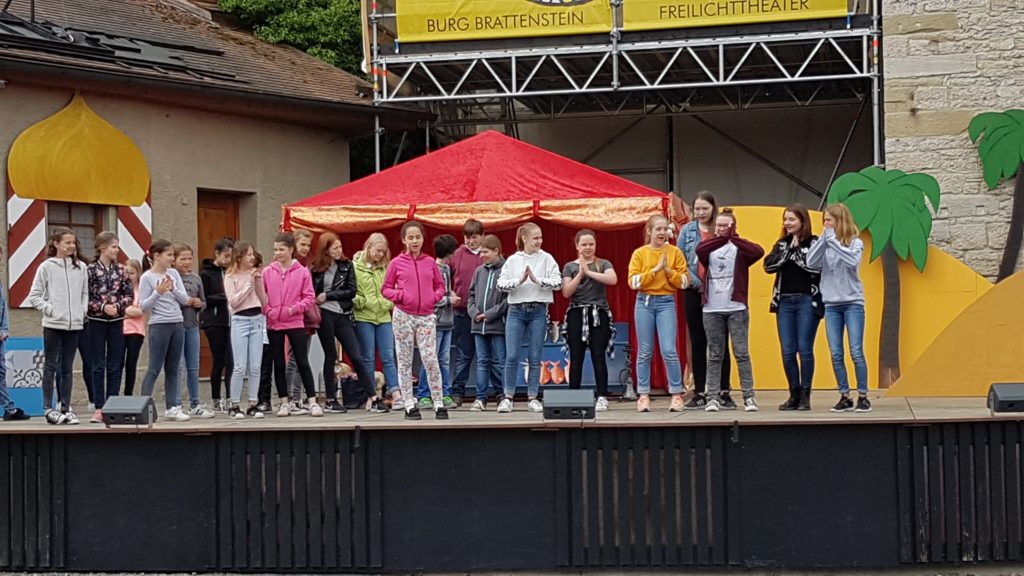 Wir durften, neben unserer klassischen Schulaufführung, schon zweimal in Röttingen auf der Burg Brattenstein im Rahmen der Frankenfestspiele auftreten. Dort wurde uns sogar professionelle Bühnen- und Tontechnik zur Verfügung gestellt!