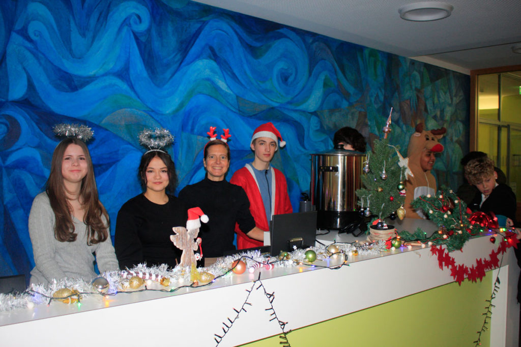 In alle 5. Klassen kam der Nikolaus mit seinem Gefolge, um mal ein bisschen anzudeuten, wo vielleicht der eine oder andere in den letzten Wochen aufgefallen ist – positiv oder ! Ein kleines Geschenk gab es für alle! Danach ging die Arbeit für die Mannschaft „Advent“ weiter, da es im Schülercafé warmen Punsch gab … mit Weihnachtsmusik!