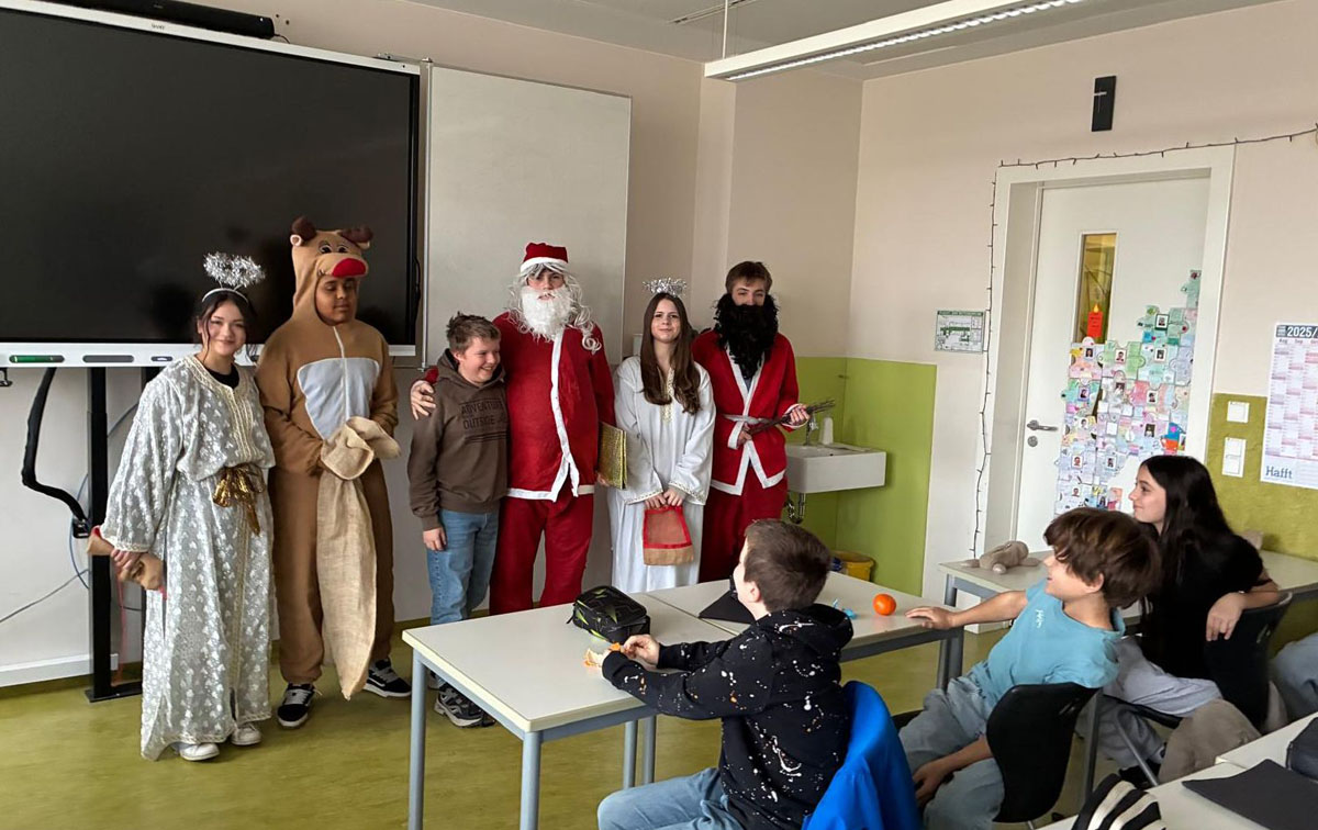 In alle 5. Klassen kam der Nikolaus mit seinem Gefolge, um mal ein bisschen anzudeuten, wo vielleicht der eine oder andere in den letzten Wochen aufgefallen ist – positiv oder ! Ein kleines Geschenk gab es für alle! Danach ging die Arbeit für die Mannschaft „Advent“ weiter, da es im Schülercafé warmen Punsch gab … mit Weihnachtsmusik!